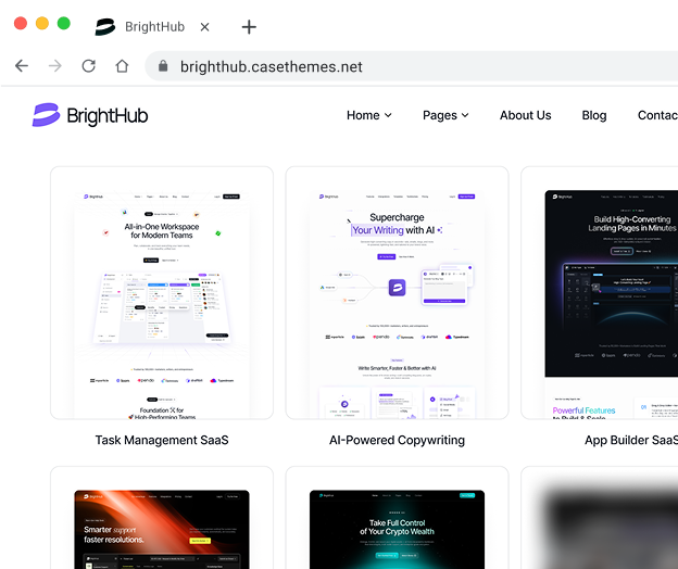 We’ve tested a lot of themes for SaaS websites. BrightHub hits the sweet spot between flexibility and performance.